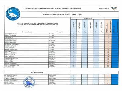 1η Αγωνιστική 6/4/2025 Επαρχία Λεμεσου, παραλία Αγίου Ερμογενη. Αποτελέσματα Αγωνιστικής (φύλλο αγώνα) Τελική κατάταξη 1ης Αγωνιστικής Τελική κατάταξη Αγωνιστικών (Βαθμολογία)