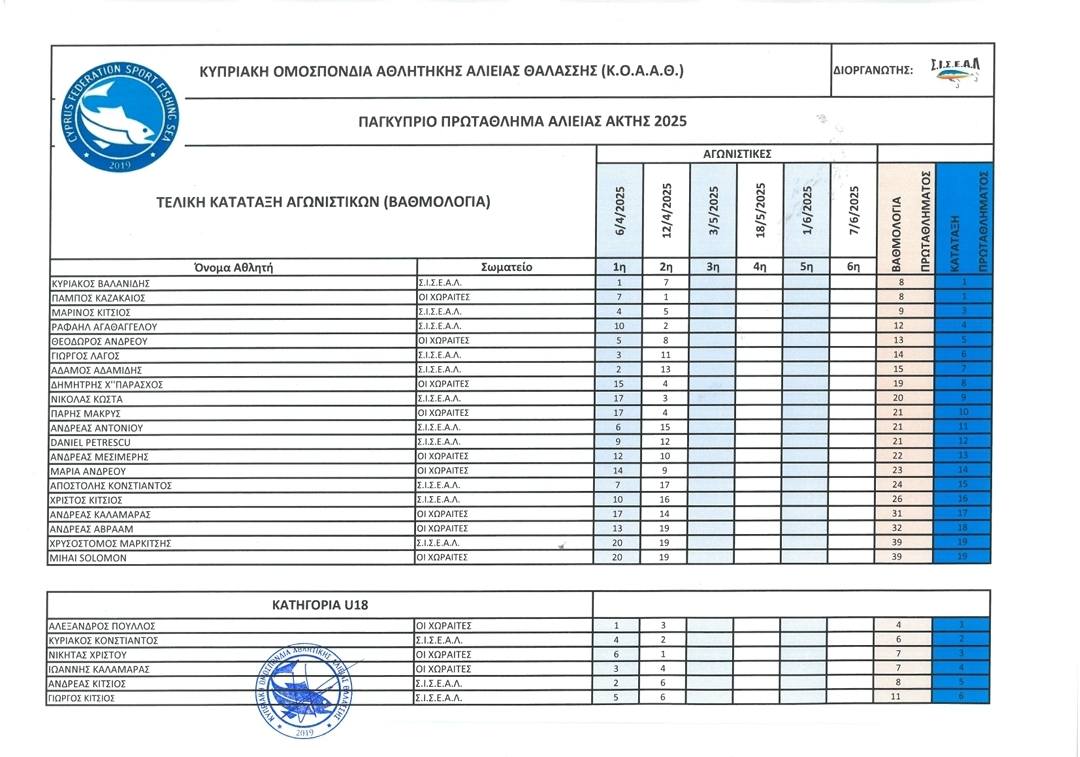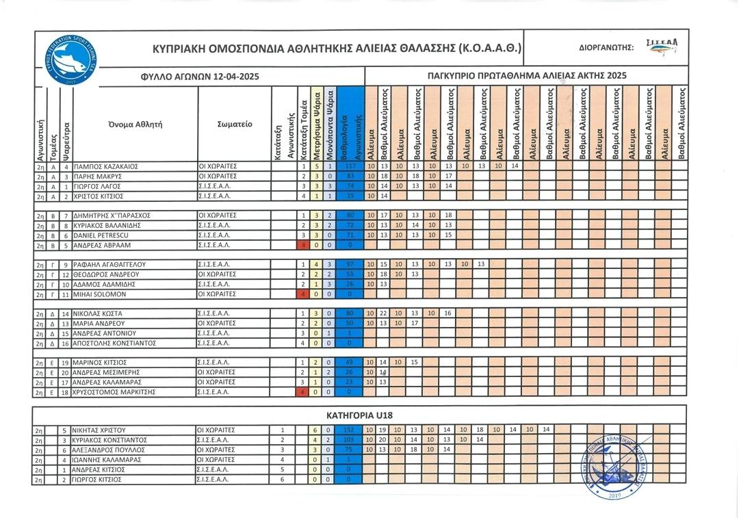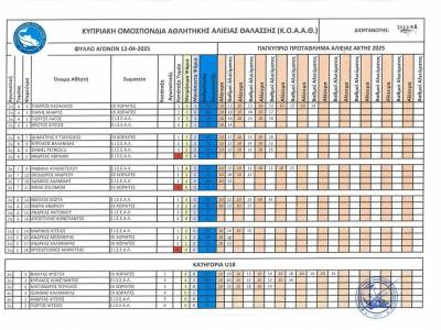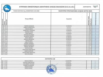 2η Αγωνιστική 12/4/2025 Επαρχία Λάρνακας, παραλία Σοφτάδες. Αποτελέσματα Αγωνιστικής (φύλλο αγώνα) Τελική κατάταξη 2ης Αγωνιστικής Τελική κατάταξη Αγωνιστικών (Βαθμολογία) μετά και την 2η Αγωνιστική.