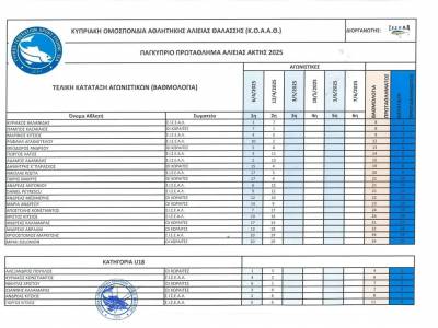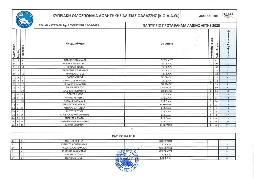2η Αγωνιστική 12/4/2025 Επαρχία Λάρνακας, παραλία Σοφτάδες. Αποτελέσματα Αγωνιστικής (φύλλο αγώνα) Τελική κατάταξη 2ης Αγωνιστικής Τελική κατάταξη Αγωνιστικών (Βαθμολογία) μετά και την 2η Αγωνιστική.